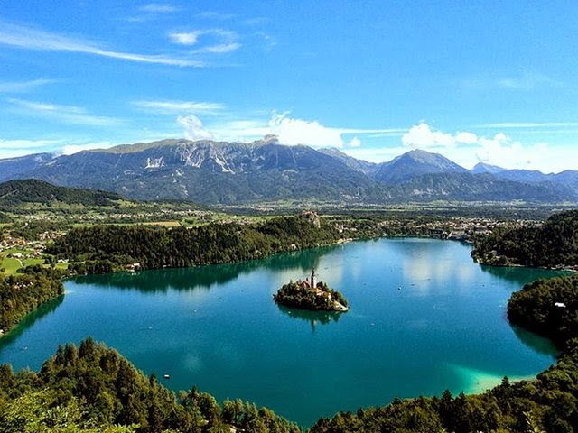 Απέχει μόλις 55 χλμ. από την πρωτεύουσα, Λιουμπλιάνα, Από πάνω της δεσπόζει το μεσαιωνικό φρούριο ενώ στο ρομαντικό νησάκι της λίμνης υπάρχει ο ναός της Κοίμησης της Θεοτόκου του 17ου αιώνα, το οποίο πολλά ζευγάρια επιλέγουν για το μυστήριο του γάμου τους.