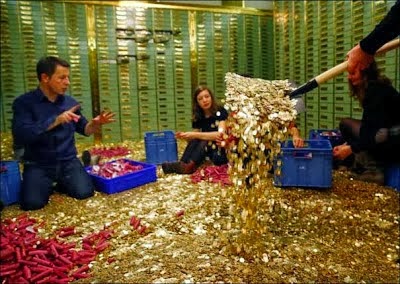 σε 400.000 φράγκα (324.580 ευρώ) στα πλαίσια μιας πρωτότυπης διαμαρτυρίας από ακτιβιστές για την καθιέρωση ενός ελάχιστου μηνιαίου εισοδήματος 2.500 φράγκων για κάθε πολίτη, ανεξάρτητα από την οικονομική του κατάσταση.